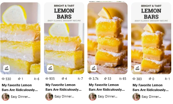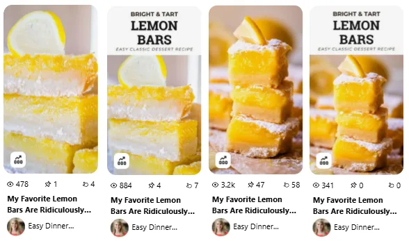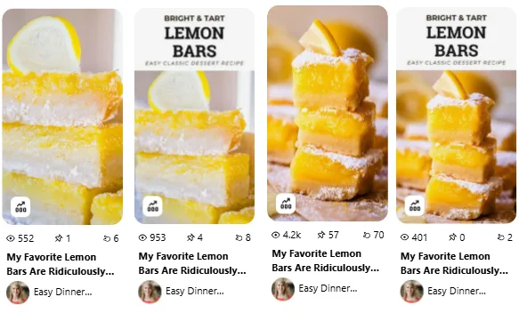 In the dessert-focused Lemon Bars pins, we noticed a clear pattern: