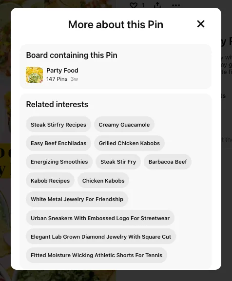 Our client's collage pin also showed us the related searched terms being attached to their pin once uploaded as well: