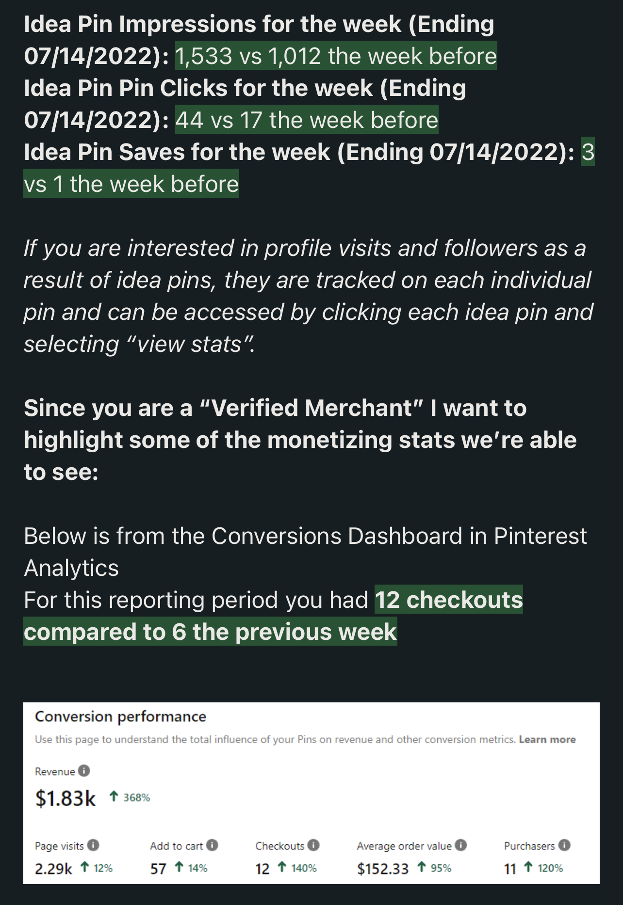 This client was focused on visibility first and foremost because they were not on Pinterest when we first started working together. Their second goal was sales for long term growth and sustainability. So in 30 days we implemented a few things: