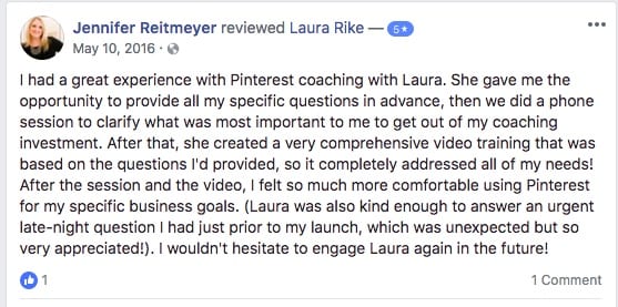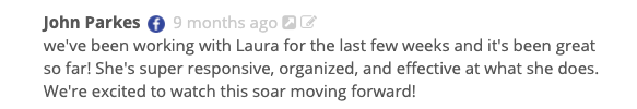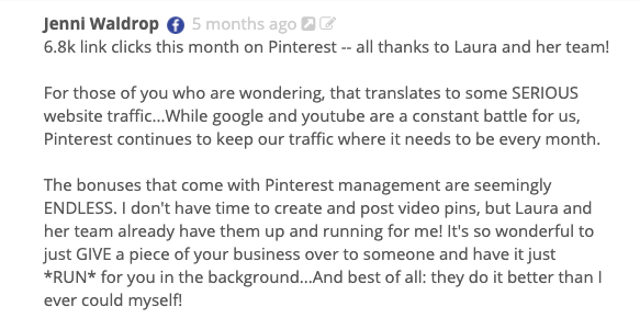 "I've worked with Laura since early 2019, and I've had a fantastic experience. Laura is extremely knowledgeable about her field and committed to staying up to date on the latest platform changes and newest best practices to ensure her clients' perform well. I enthusiastically recommend her to anyone looking for an expert to manage their Pinterest"